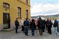 Deltagarna i korum fotograferade vid Minnesstenen i Regementsparken. Stenen avtäcktes på Regementets dag den 21 augusti 1949.